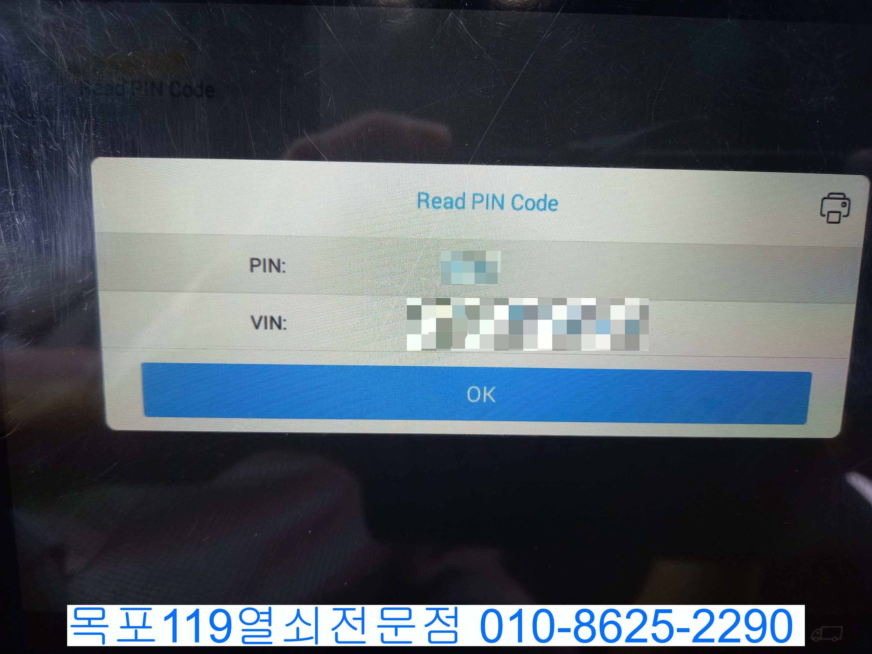 현대자동차나 기아자동차와 같이 핀코드가 필요해 추출장비로 보안코드를 추출합니다.