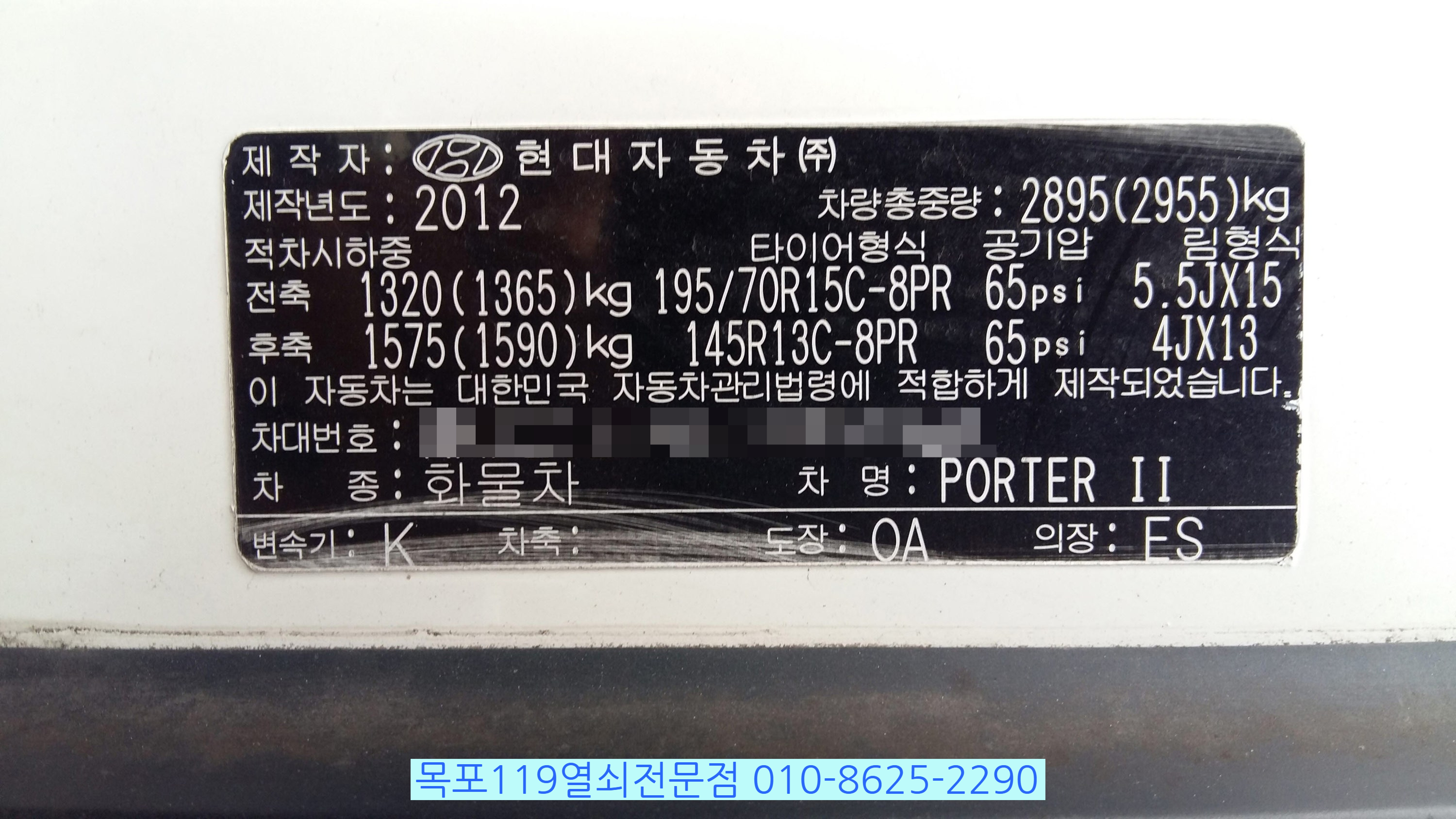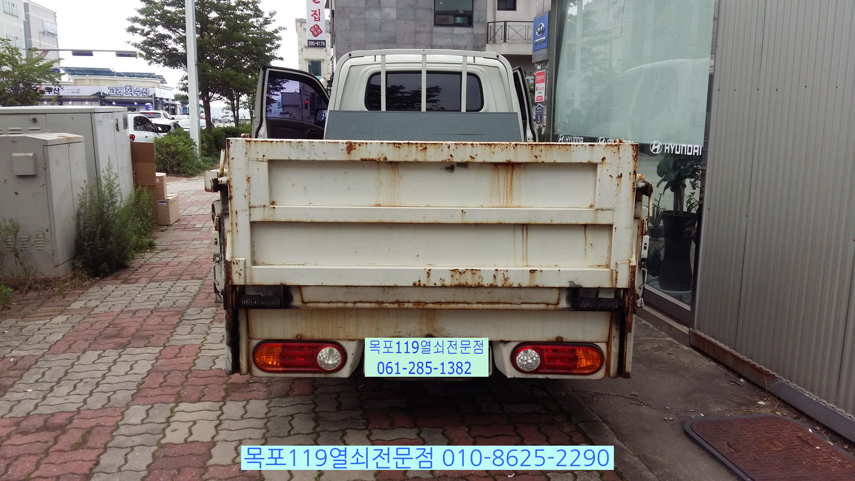 차량은 목포시 상동 현대블루핸즈 평화점에 견인된 상태입니다.
