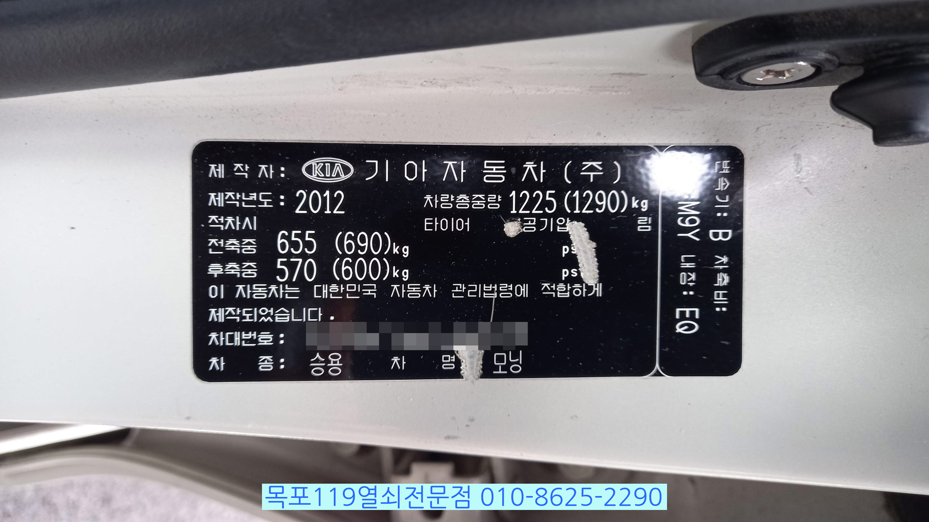 차량은 2012년식 기아자동차 모닝입니다.