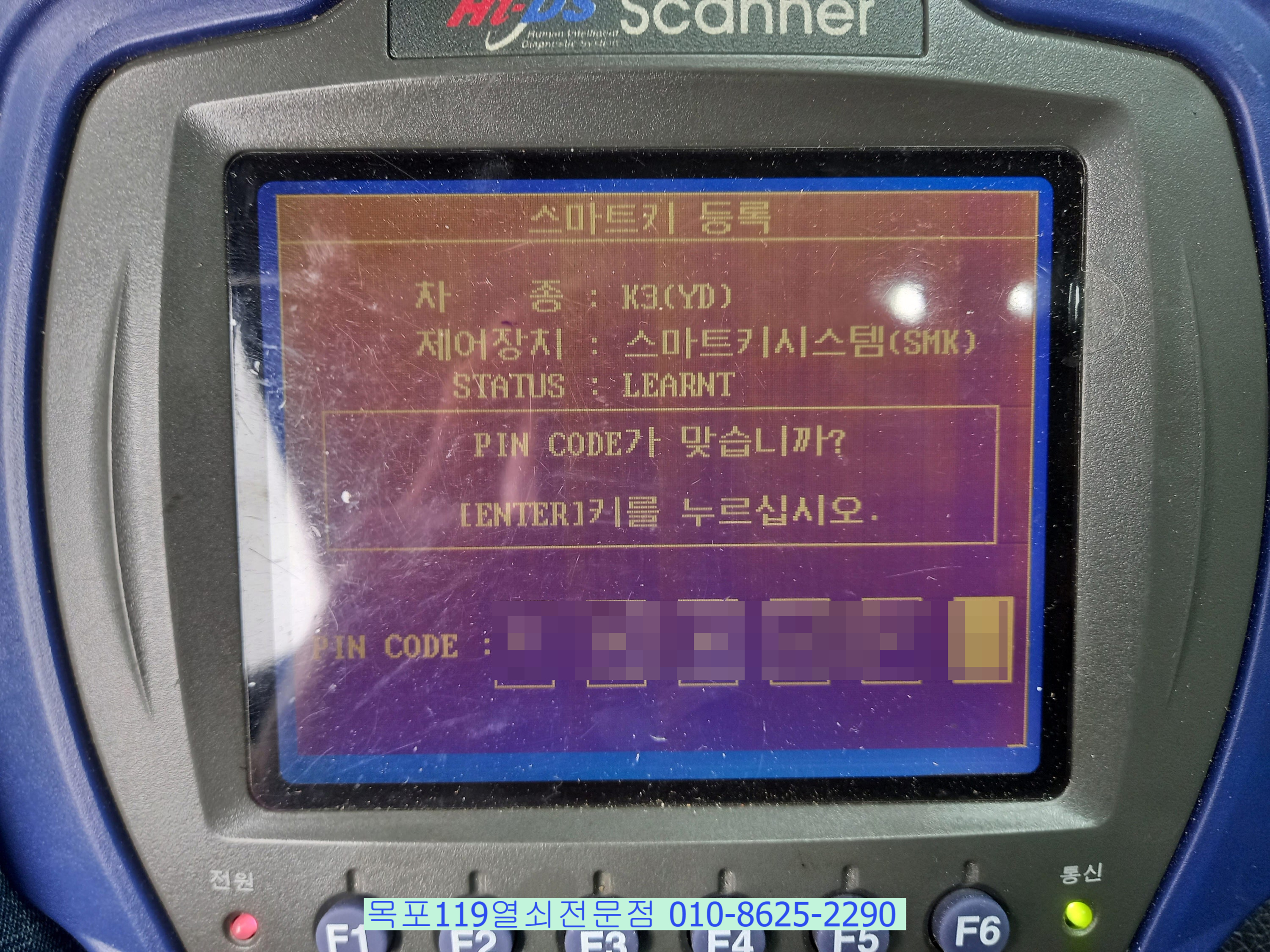 추출된 핀코드를 사용해 스마트키를 차량에 등록합니다.
